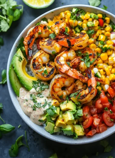 0 commentsGrilled Shrimp Bowl with Avocado, Corn Salsa & Creamy Garlic Sauce is a delightful dish that promises to tantalize your taste buds. This amazing culinary creation combines the succulent flavors of grilled shrimp, creamy avocado, refreshing corn salsa, and a rich garlic sauce. Whether you’re enjoying a sunny day outdoors […]