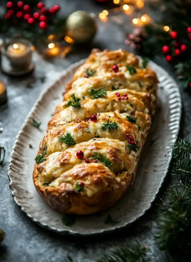 0 commentsCheesy Christmas Tree Bread is a festive and delicious way to celebrate the holiday season. This wonderful creation will not only dazzle your guests but also fill your home with the delightful aroma of baked cheese and herbs. Shaped like a charming Christmas tree, this appetizer is perfect for gatherings, […]