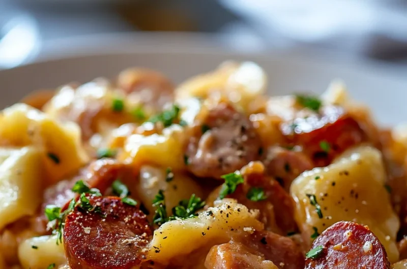 2. Comforting Flavors – The combination of potatoes, cheese, and kielbasa evokes the warmth of home-cooked meals.